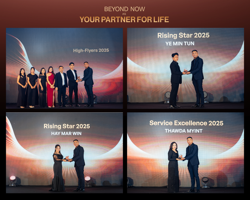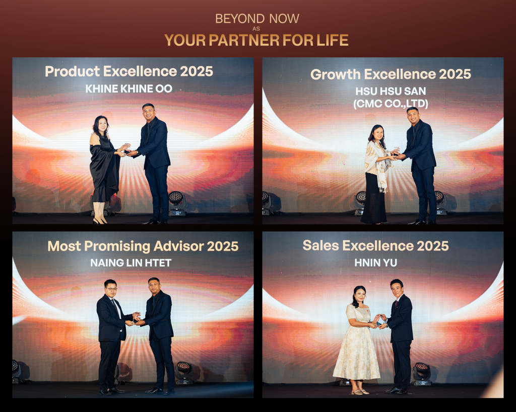 The evening also allowed us to reflect on our collective achievements, including our impactful “Road to Recover and Rebuild” initiative. In response to the recent earthquake, AYA SOMPO Insurance worked closely with our partners and agents to support affected communities and policyholders. Through timely claims assistance and coordinated relief efforts, we were able to contribute meaningfully to recovery and rebuilding initiatives.